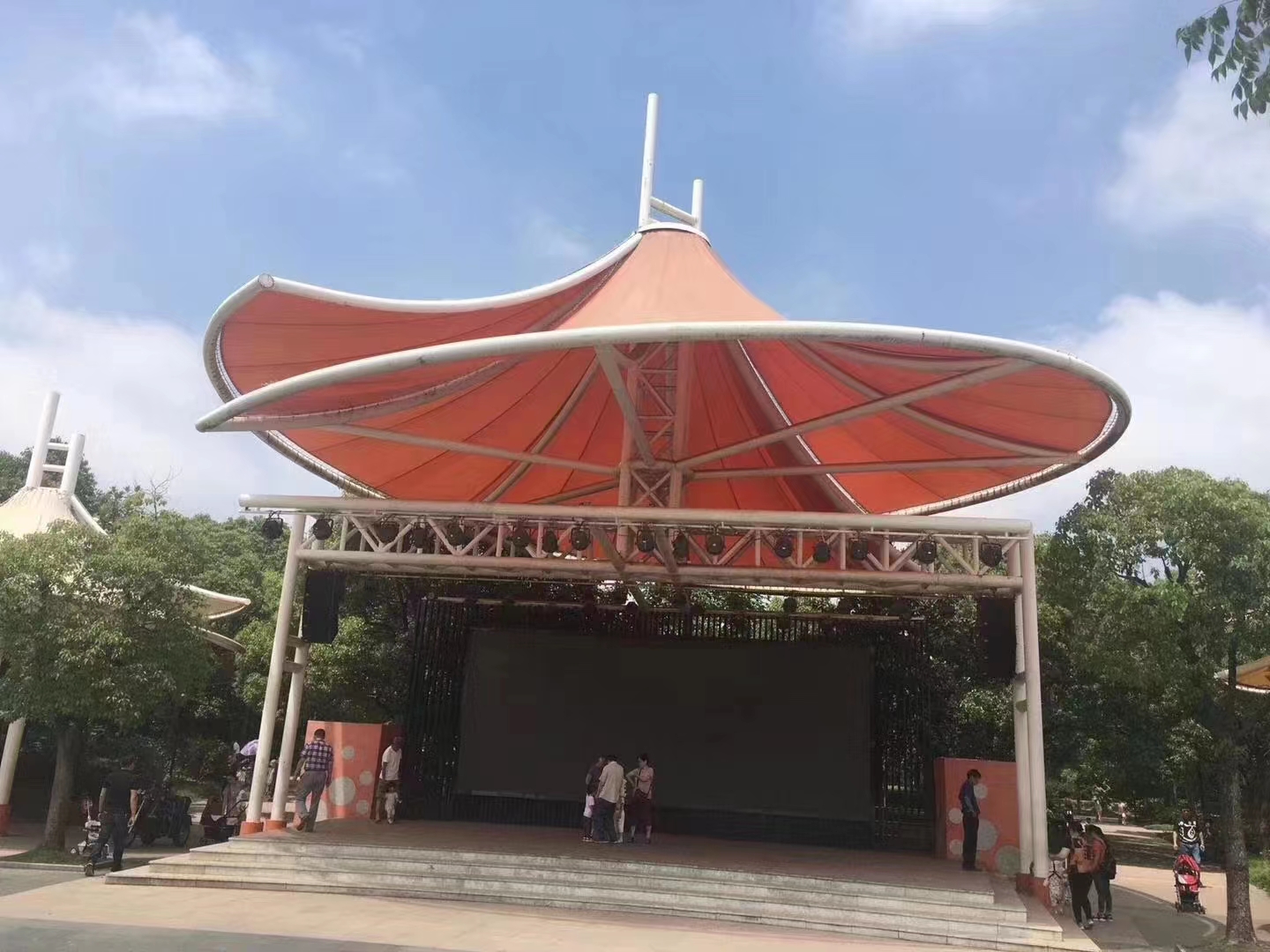 承接膜結(jié)構(gòu)景觀棚、膜結(jié)構(gòu)自行車車棚 、膜結(jié)構(gòu)交通設(shè)施 膜結(jié)構(gòu)停車棚、推拉篷 充電樁 候車廳 體育看臺(tái) 設(shè)施景的設(shè)計(jì)、生產(chǎn)、銷售、制作、安裝施工以及使用維護(hù)。